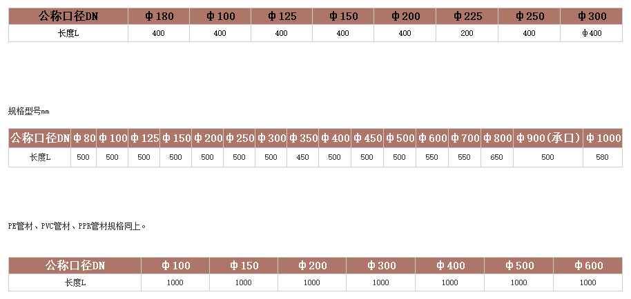 適用管道:國標球墨管、鑄鐵管、PVC管。